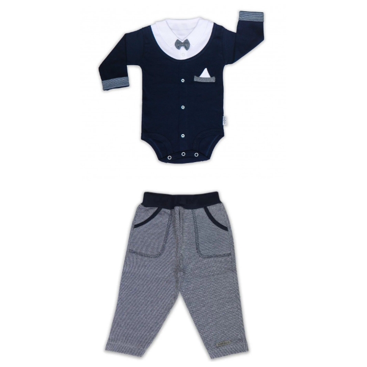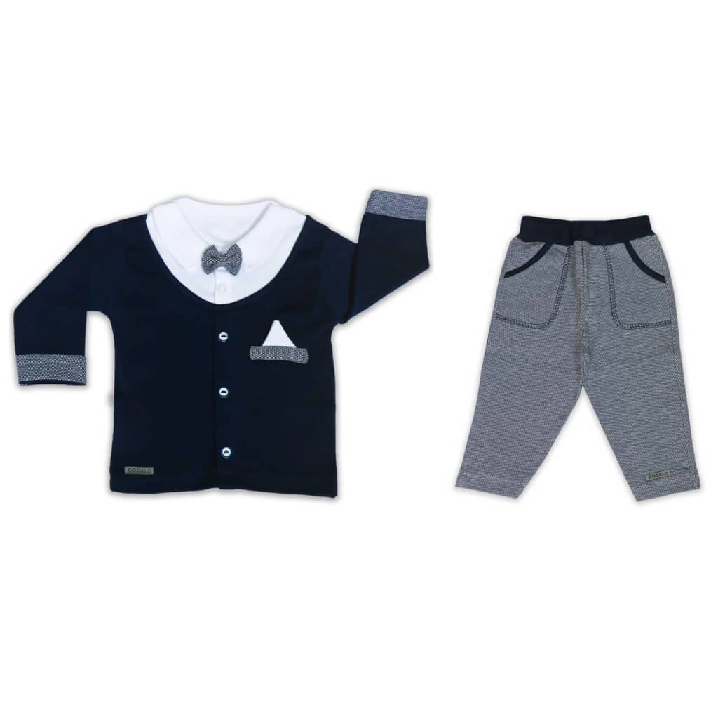 ست بلوز آستین بلند و شلوار نوزادی کوکالو – سرمهای با پاپیون، سایز ۰ تا ۳ سال