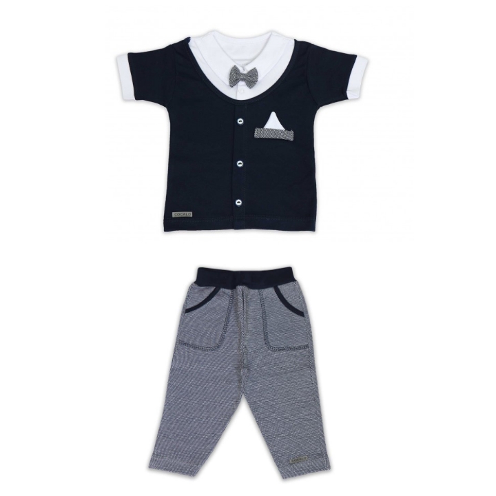 465.000 تومان – 510.000 تومانست بلوز آستین کوتاه و شلوار نوزادی کوکالو – سرمهای با پاپیون، سایز ۰ تا ۳ سال
