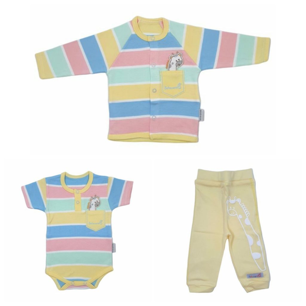 ست لباس نوزادی ۳ تکه بهاوران مدل زرافه | جنس دورو پنبه لطیف