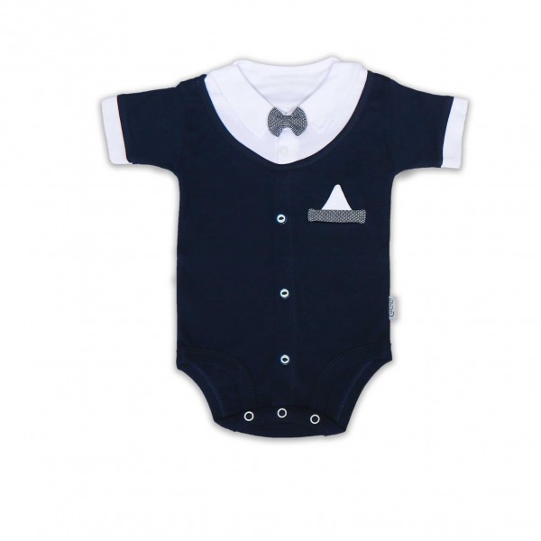 زیردکمه بادی نوزادی کوکالو آستین کوتاه طرح سرمهای پاپیون | مناسب تا ۳ سال