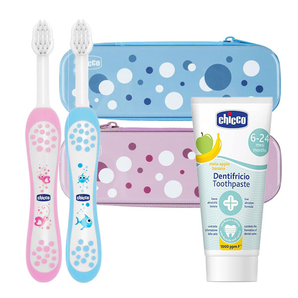 ست کامل مسواک و خمیردندان چیکو Chicco مخصوص کودکان 6 ماه تا 3 سال