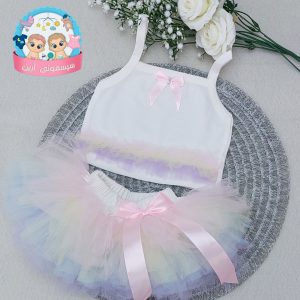 ست لباس نوزادی ۳ تکه بهاوران مدل زرافه، دوخت باکیفیت از پارچه دورو پنبه نرم و تنفسپذیر، مناسب نوزادان ۰ تا ۹ ماه، شامل بادی، بلوز و شلوار با طراحی رنگی و شاد.