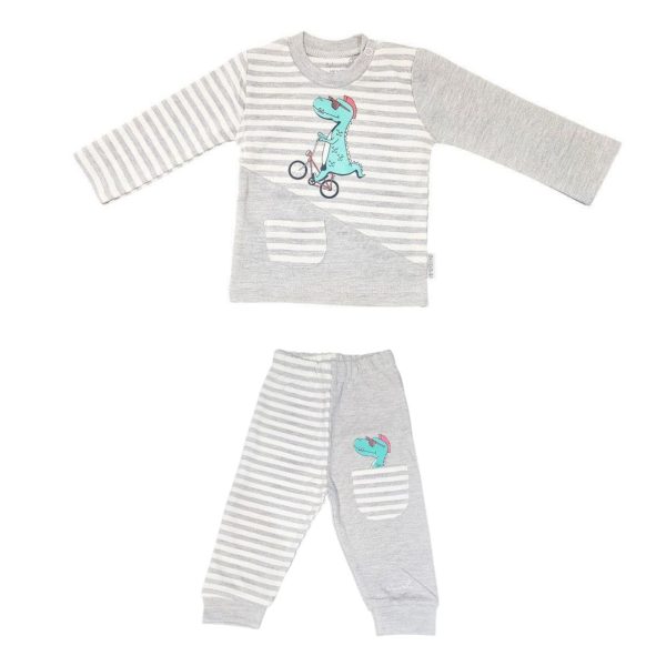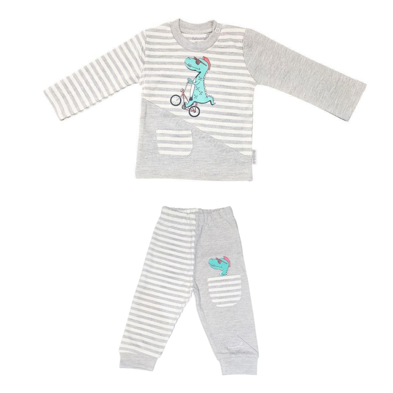 خانه پوشاک پسرانه ست 3،5،20 تیکه آستین بلند و شلوار به آوران طرح دینو سایز نوزادی تا ۳ سال