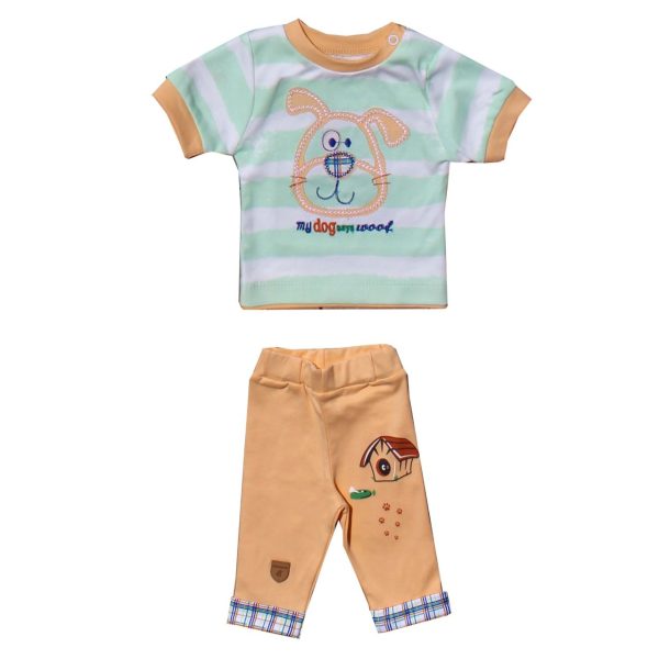 زیردکمه آستین کوتاه با شلوار به آوران طرح پاپی دوروپنبه سایز نوزادی تا سه سال