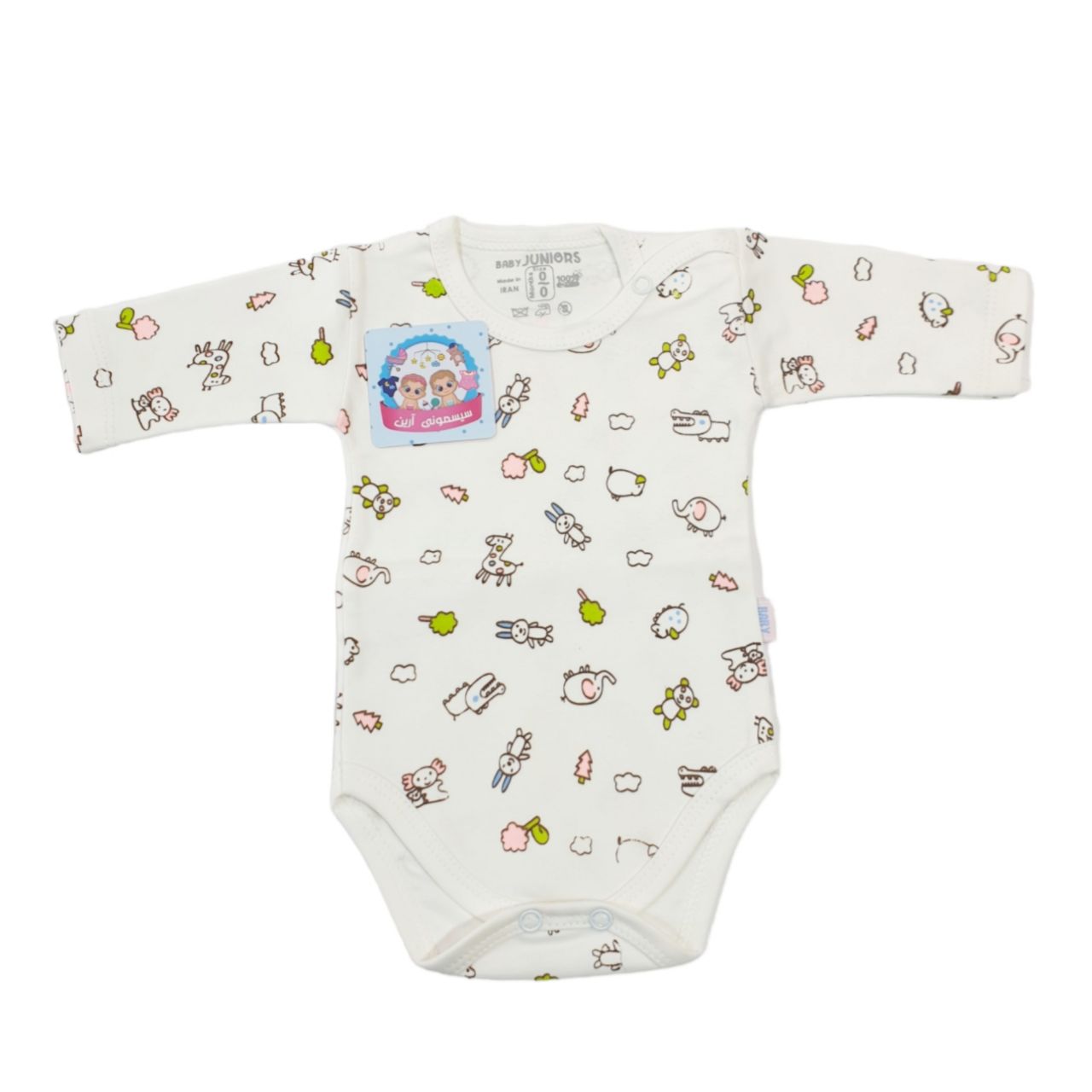 زیردکمه آستین بلند جونیورز سایز نوزاد زودرس طرح شیر رنگ شیری بادی بلند