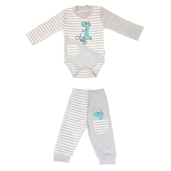 زیردکمه آستین بلند و شلوار دوروپنبه به آوران طرح دینو سایز نوزادی تا 3 سال بادی