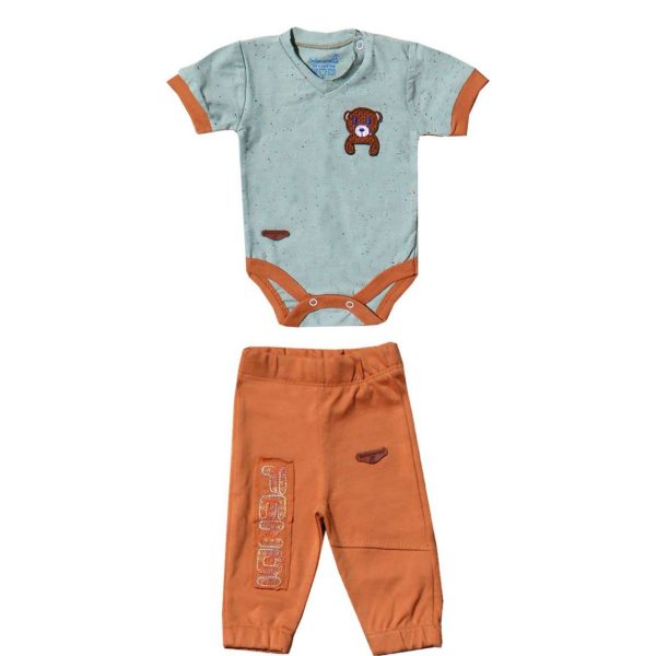 زیردکمه آستین کوتاه و شلوار دوروپنبه به آوران طرح فندی سایز نوزادی تا 3 سال بادی