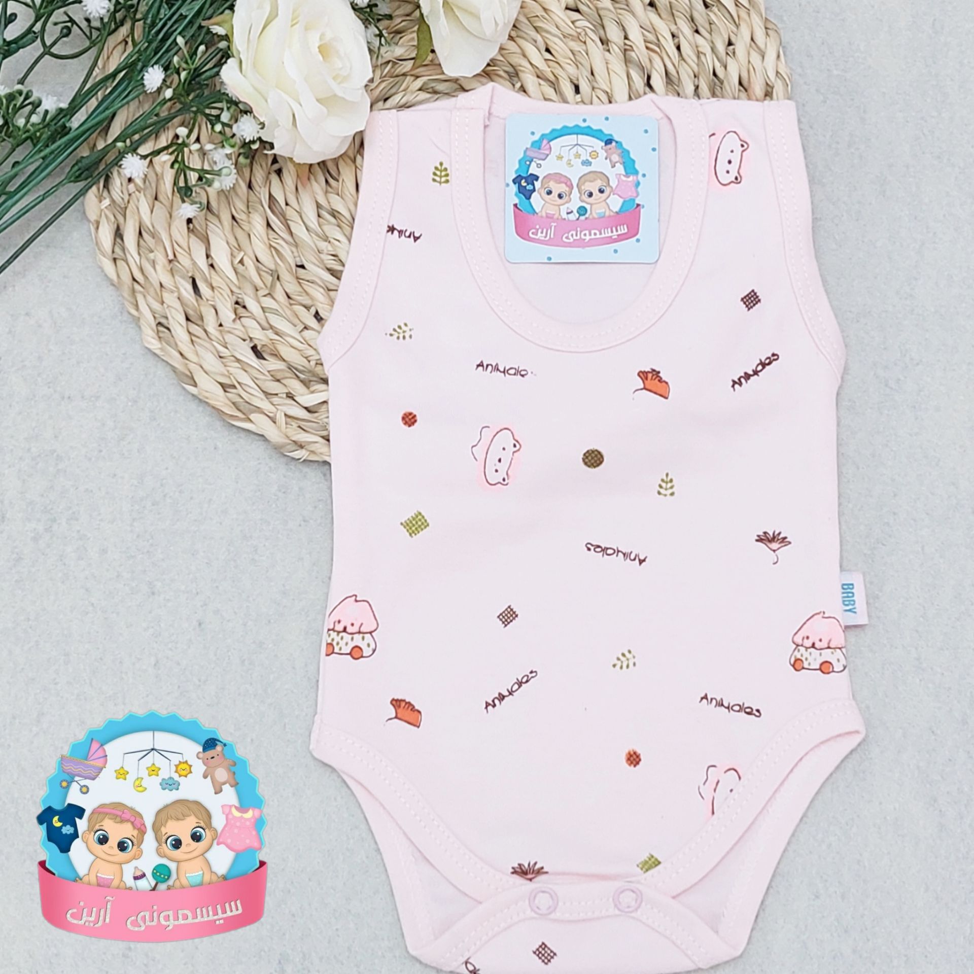 زیردکمه آستین کوتاه با شلوار به آوران طرح پاپی دوروپنبه سایز نوزادی تا سه سال