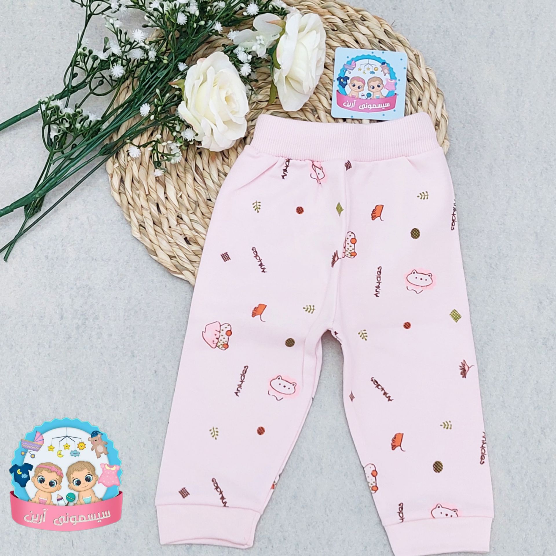 شلوار جونیورز صورتی سایز نوزاد زودرس دوصفر طرح شیر