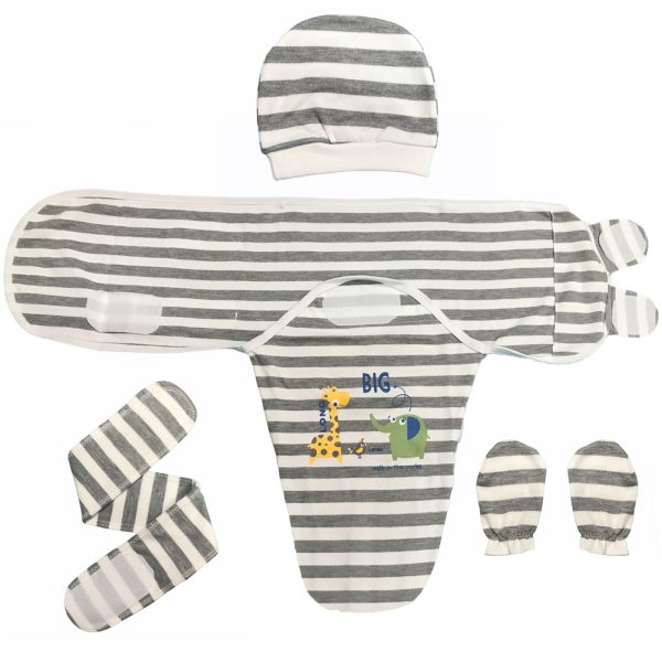 قنداق چسبی نوزاد برند جونیورز ۵تیکه مناسب از بدو تولد طوسی زرافه