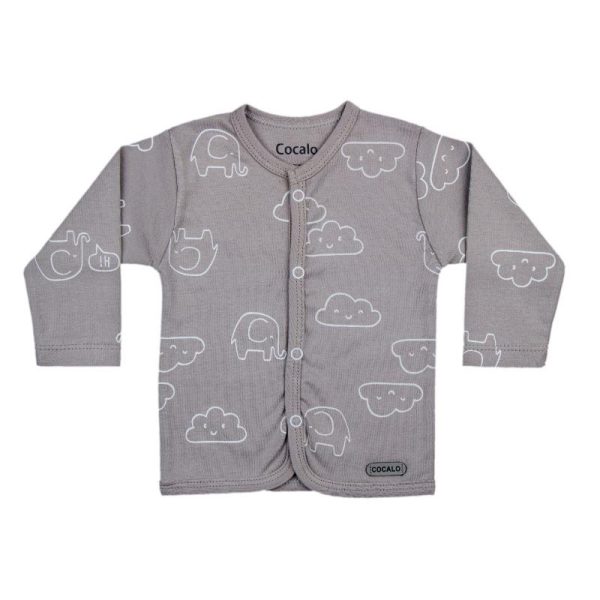 مانتو جلودکمه کوکالو طرح ابر و فیل سایز نوزادی تا یکسال