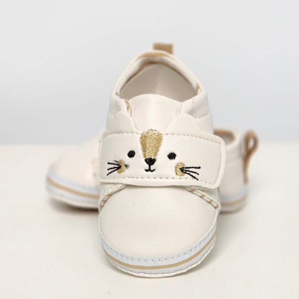 • پاپوش نوزادی فانتزی با طراحی بامزه گربه، سبک و راحت، مناسب 0 تا 12 ماه. در دو رنگ کرم و سفید و ۴ سایز مختلف برای مراحل رشد کودک.