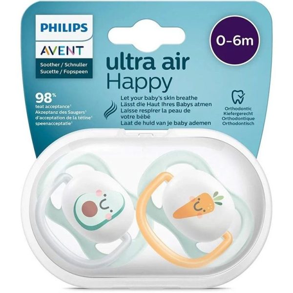 خانه غذا خوری پستانک و ملزومات پستانک اونت اولترا ایر ۲عددی 0 تا 6 ماه avent ultra air هویج آووکادو